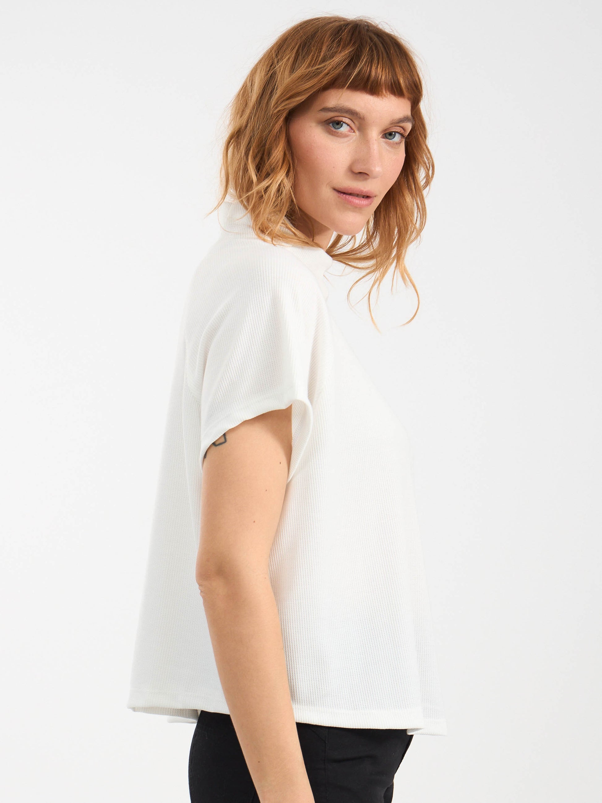חולצה מבד פיקה ומפתח רגלן וצווארון גבוה. לחולצה האהובה שרוול קצר המתאים לעונת המעבר והקיץ.